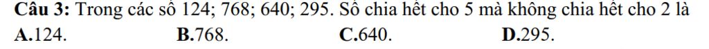 Vì `295` có tận cùng là `5` nên chia hết cho `5` nhưng không chia hết cho `2`