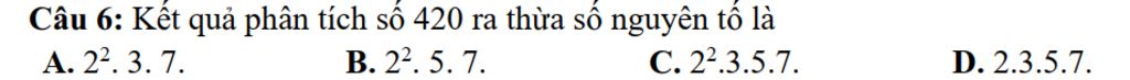 Câu 6: Kết quả phân tích số 420 ra thừa số nguyên tố là