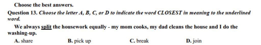 Question 13. Choose the letter A, B, C, or D to indicate the word CLOSEST in meaning to the underlined
