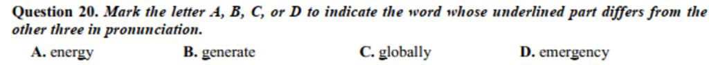 Question 20. Mark the letter A, B, C, or D to indicate the word whose underlined part differs from the other three in pronunciation.