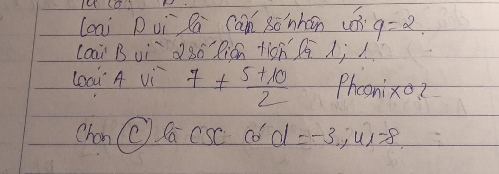 Loại `A` vì khoảng cách đơn vị giữa `7` và `10` lệch công sai