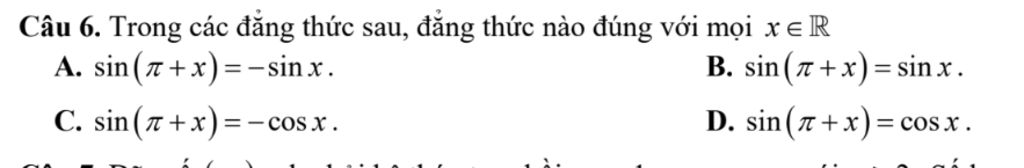 Câu 6. Trong các đẳng thức sau, đẳng thức nào đúng với mọi x thuộc R