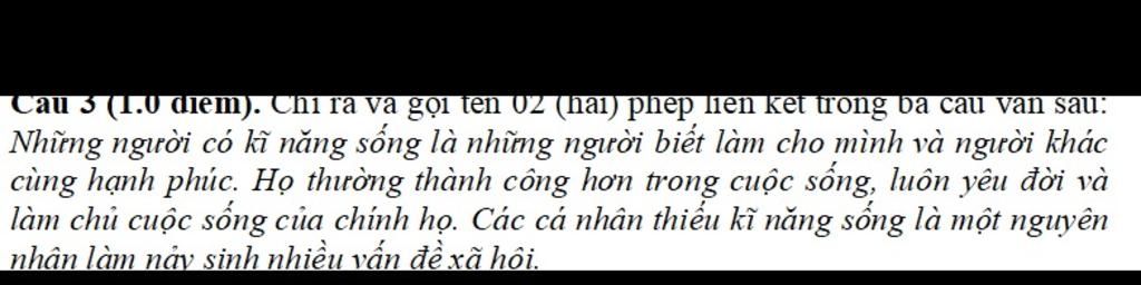 `+` Phép lặp : "kĩ năng sống" ở câu `(1)` được lặp lại ở câu `(3)`.