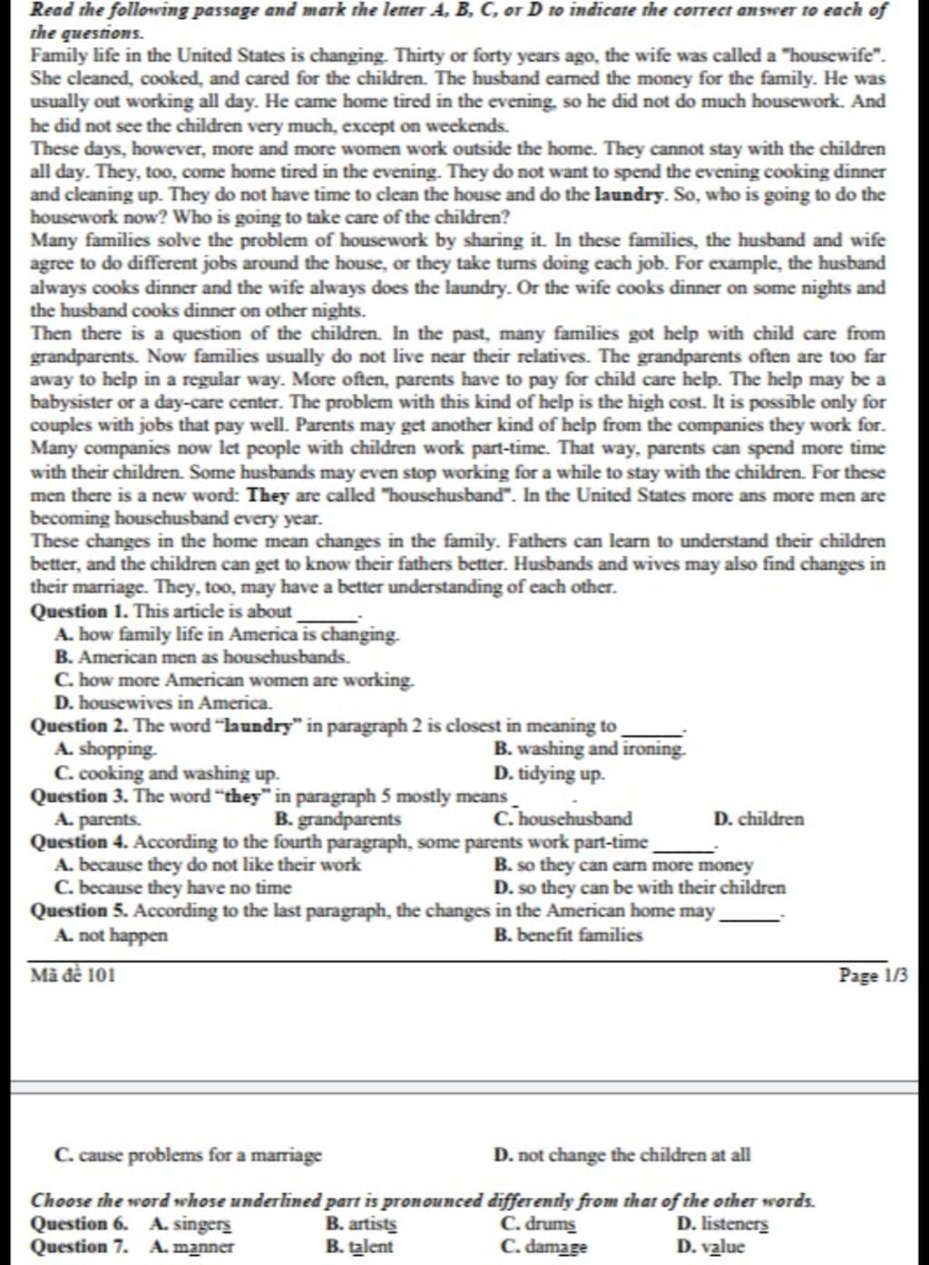 Read the following passage and mark the letter A, B, C, or D to indicate the correct answer to each of the questions.