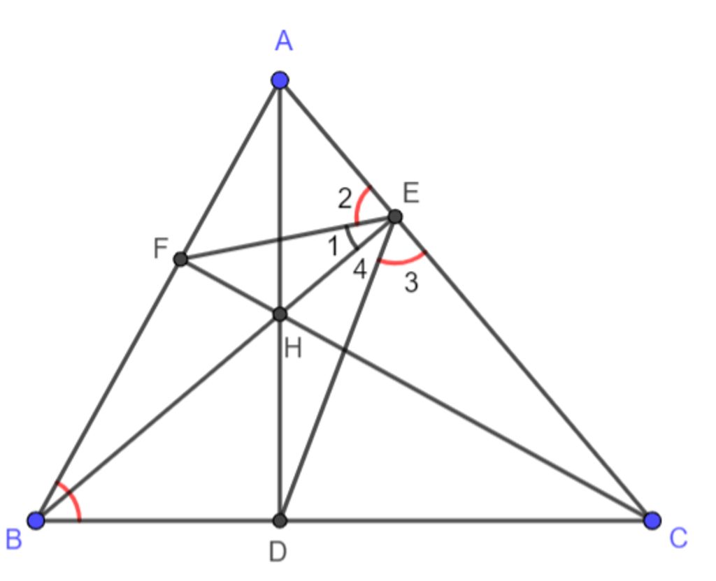 Từ (1);(2)⇒AEFˆ=CEDˆ (=góc ABC)