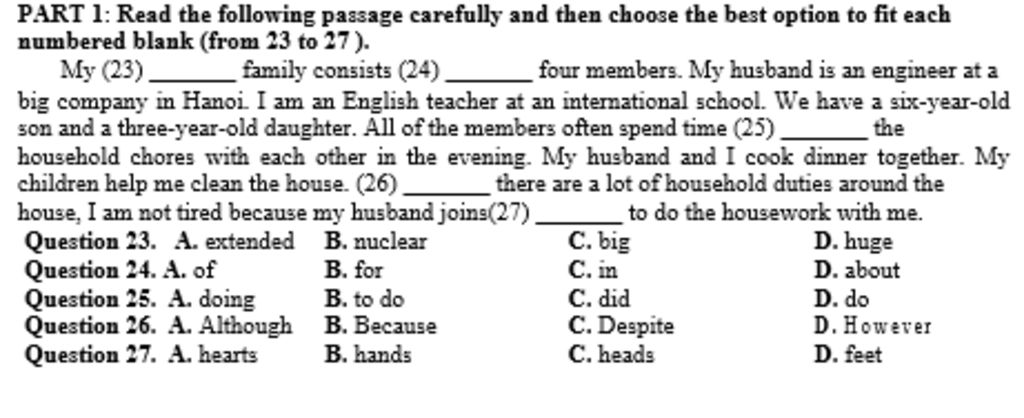 `-` Nuclear family (gia đình hạt nhân) gồm bố mẹ và con cái
