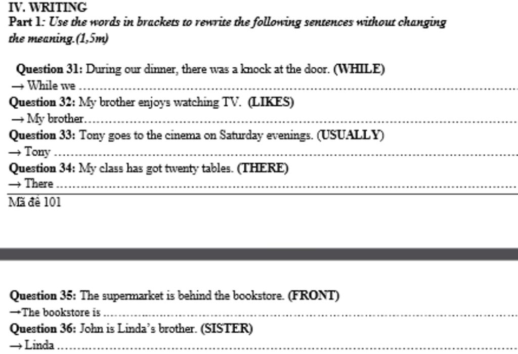 Part 1: Use the words in brackets to rewrite the following sentences without changing the meaning.(1,5m)