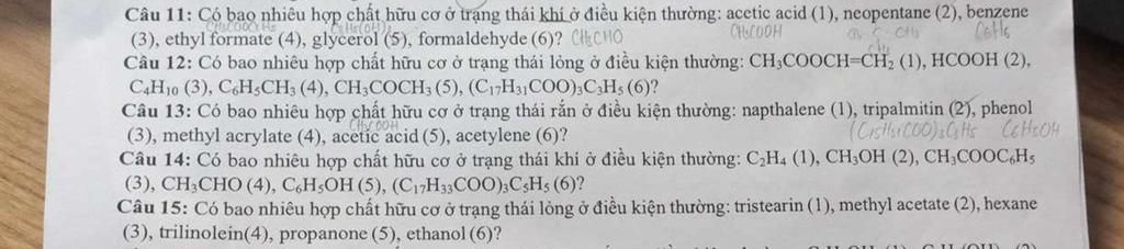 Các chất hữu cơ ở trạng thái rắn ở điều kiện thường: $(1)$, $(2)$, $(3)$