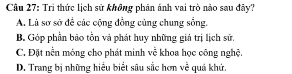 `->` Mặc dù lịch sử có thể ảnh hưởng đến sự phát triển của khoa học và công nghệ, nhưng tri thức lịch sử không trực tiếp đặt nền móng cho các phát minh trong lĩnh vực này. Vai trò này thường thuộc về các lĩnh vực khác như khoa học tự nhiên và kỹ thuật.