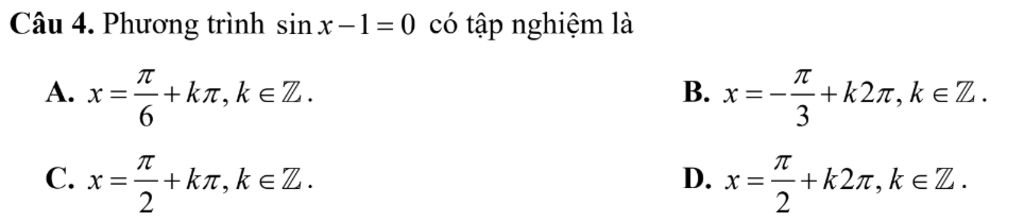 Vậy phương trình có tập nghiệm là: `S={\pi/2 +k2\pi|k\inZZ}.`