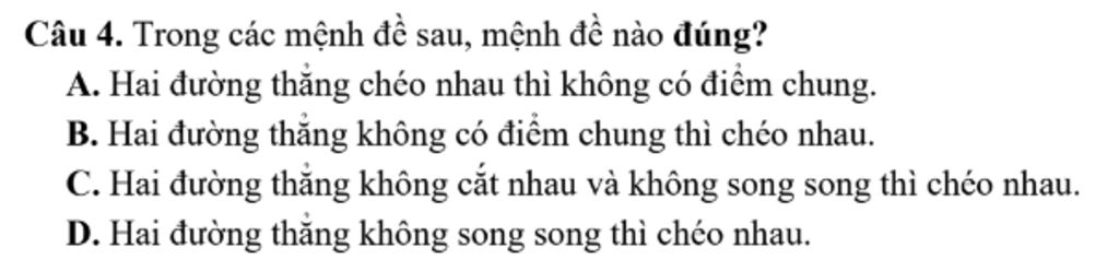 Câu 4. Trong các mệnh đề sau, mệnh đề nào đúng?