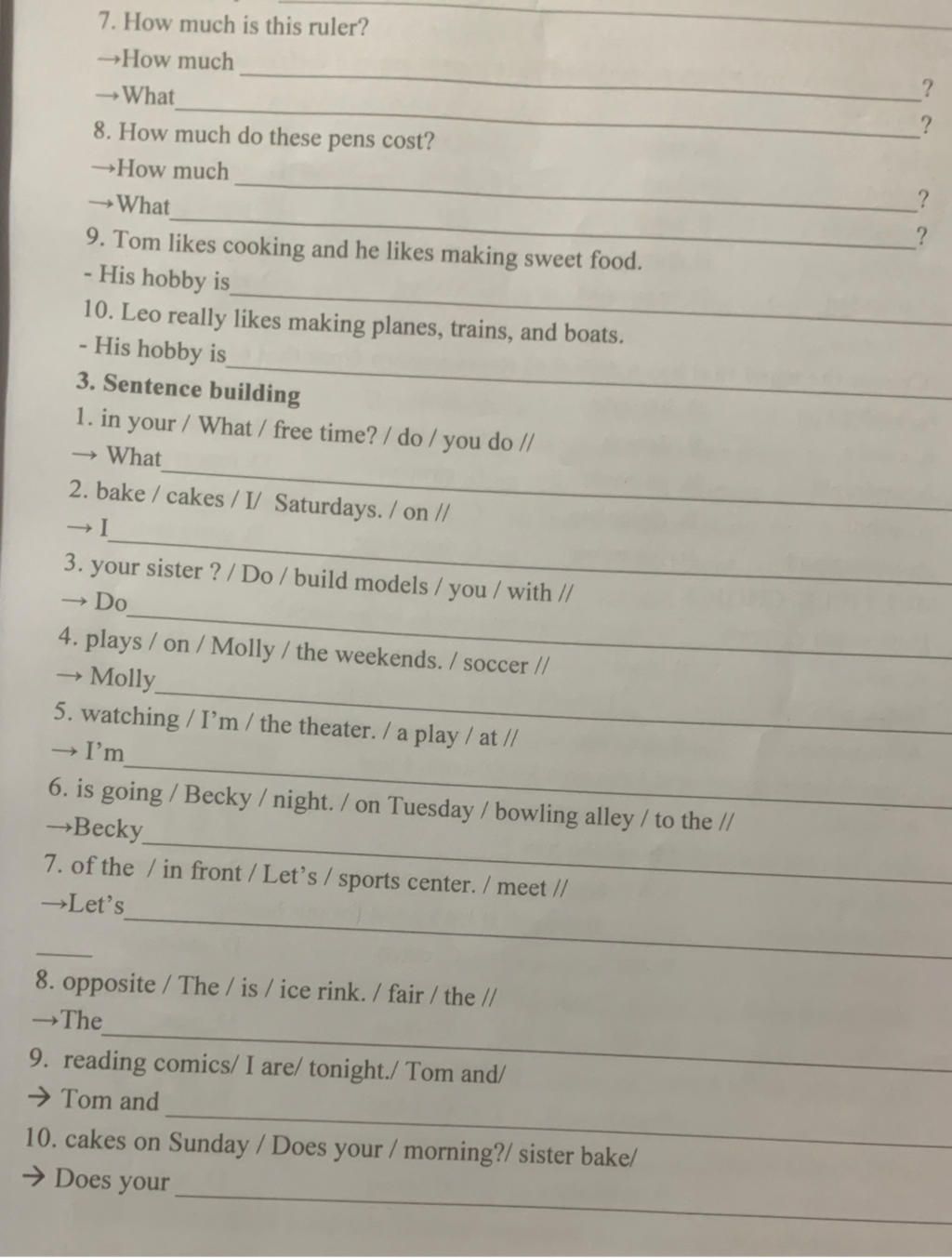 `-` Leo thích làm máy bay, tàu hỏa và thuyền nên sở thích của Leo là làm mô hình `>` có thể dùng từ chung "models" (n: mô hình) để bao quát tất cả các loại.