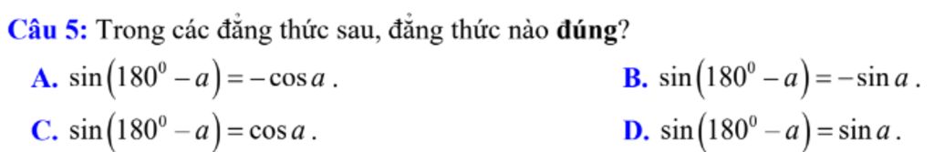 Câu 5: Trong các đẳng thức sau, đẳng thức nào đúng?