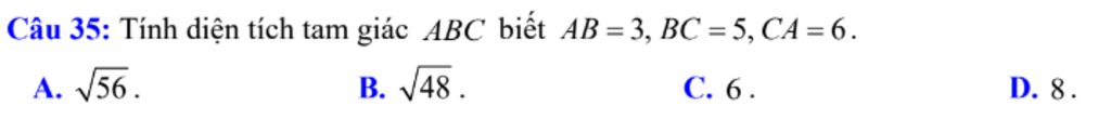 Nửa chu vi tam giác `ABC : (3+5+6)/2 = 7`