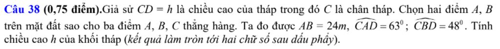 Ta có :∠ADC = $90^{o}$- $63^{o}$ = $27^{o}$
