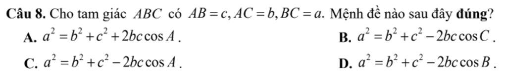 `a^{2}=b^{2}+c^{2}-2.b.c.cosA`