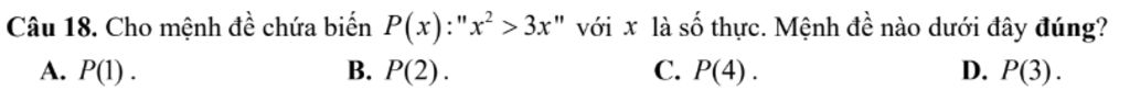`P(3) : 3^2 > 3.3` ( vô lí )