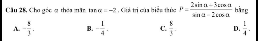 Ta chia cả tử và mẫu cho `cos\alpha` ta được: