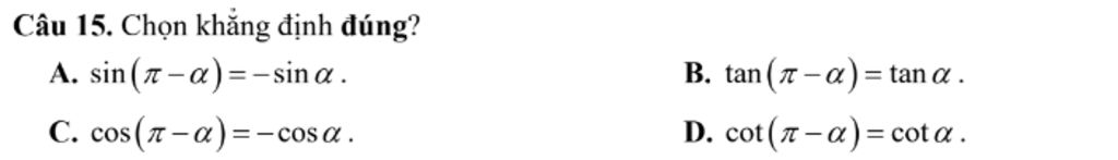 `A.sin ( \pi - \alpha) = sin\alpha`