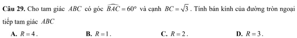 Vậy bán kính đường tròn ngoại tiếp của `ΔABC` là : `R=1`