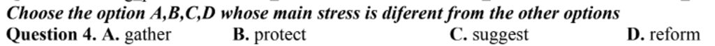 `4,`A, gather , trọng âm 1 còn lại là 2.