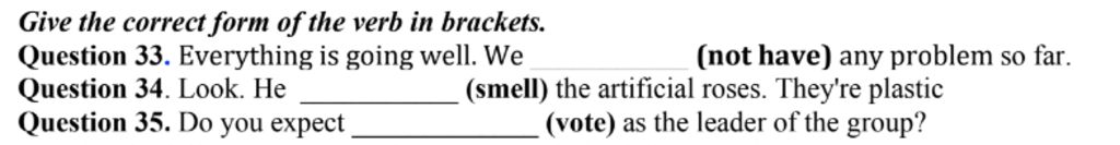 ( - ): S + has/have + not + PII -> N (số nhiều) + have