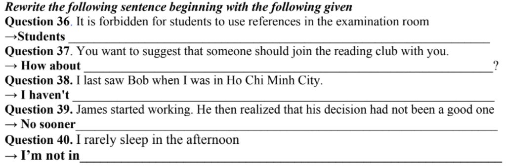 Question 36. Students mustn't use references in the examination room.