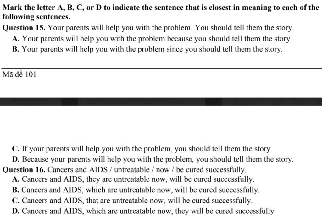 - Dựa vào nghĩa để chọn ra mệnh đề nguyên nhân, vì ba mẹ bạn sẽ giúp bạn (nguyên nhân) -> bạn nên kể họ về câu chuyện đang xảy ra