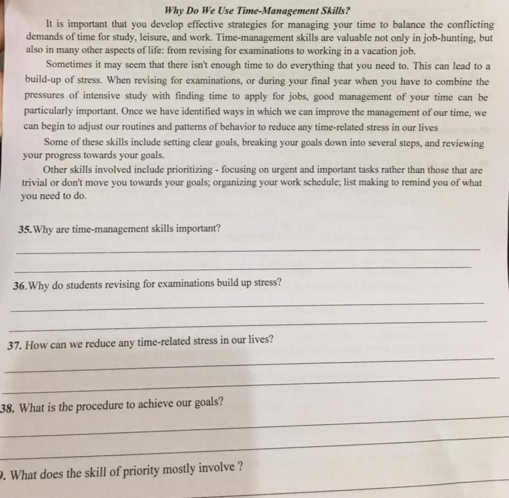 `=>` Time-management skills are important because they help us balance our time for different activities and reduce stress.