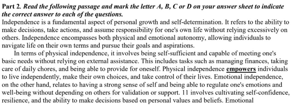 28 D (Dẫn chứng: "Physical independence empowers individuals to live independently, make their own choices...")