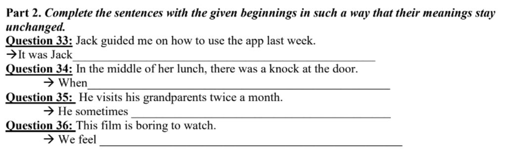 Question 33. It was Jack who/ that guided me on how to use the app last week.