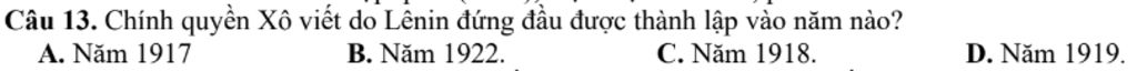 `+` Chính quyền Xô viết do Lênin đứng đầu được thành lập vào năm `1917.`