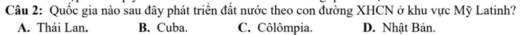 `-` Cuba là quốc gia ở khu vực Mỹ Latinh phát triển theo con đường chủ nghĩa xã hội (XHCN), đặc biệt sau cuộc cách mạng năm 1959 do Fidel Castro lãnh đạo, đã thiết lập chế độ XHCN và thực hiện nhiều cải cách xã hội, kinh tế
