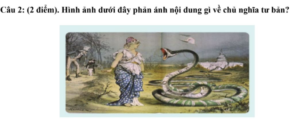 `-` Hình ảnh trên ám chỉ chủ nghĩa tư bản là một con rắn săn mồi, có sức mạnh to lớn, quyền lực, chiếm ưu thế tuyệt đối .