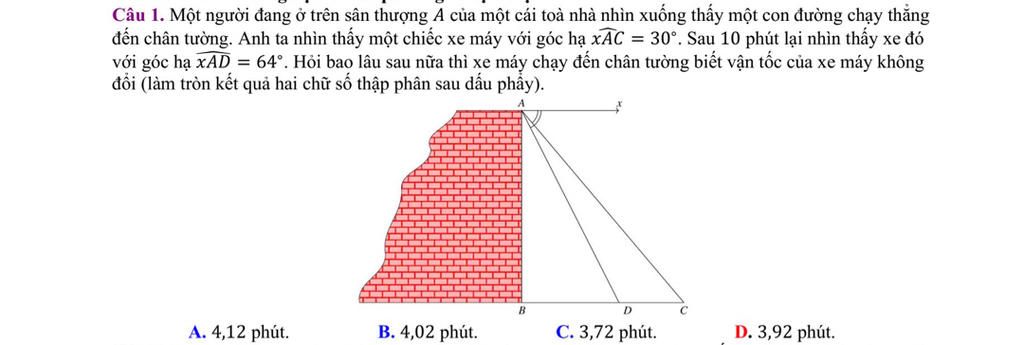 Câu 1. Một người đang ở trên sân thượng A của một cái toà nhà nhìn xuống thấy một con đường chạy thẳng