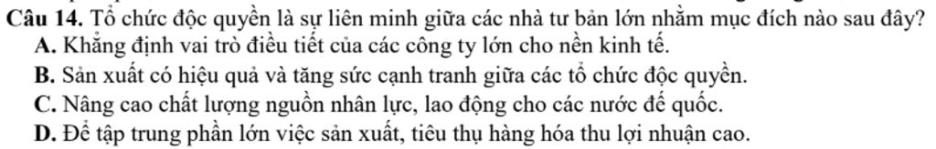 GT:Tổ chức độc quyền thường được hình thành với mục đích tối đa hóa lợi nhuận và kiểm soát thị trường, nhằm hạn chế cạnh tranh và tăng cường sức mạnh kinh tế.