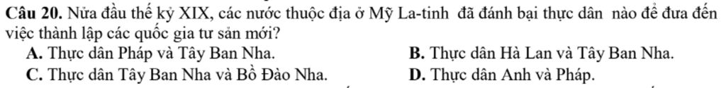 `->` Trong nửa đầu thế kỷ XIX, nhiều nước ở Mỹ La-tinh đã đấu tranh giành độc lập và thành công trong việc đánh bại sự thống trị của thực dân Tây Ban Nha và Bồ Đào Nha, dẫn đến việc thành lập các quốc gia tư sản mới trong khu vực này.