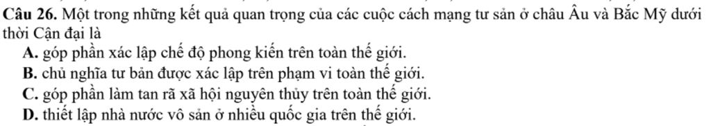`->` Các cuộc cách mạng này đã thúc đẩy sự phát triển của chủ nghĩa tư bản, góp phần vào sự chuyển đổi từ các xã hội phong kiến sang các xã hội tư sản.