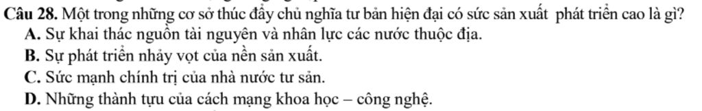 `-` Một trong những cơ sở thúc đẩy chủ nghĩa tư bản hiện đại có sức sản xuất phát triển cao là những thành tựu của cách mạng khoa học – công nghệ