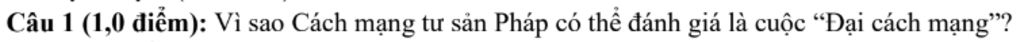 `-` Các mạng Tư sản Pháp được đánh giá là cuộc “Đại cách mạng” vì: