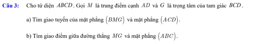 a) Tìm giao tuyến của mặt phẳng (BMG) và mặt phẳng (ACD).