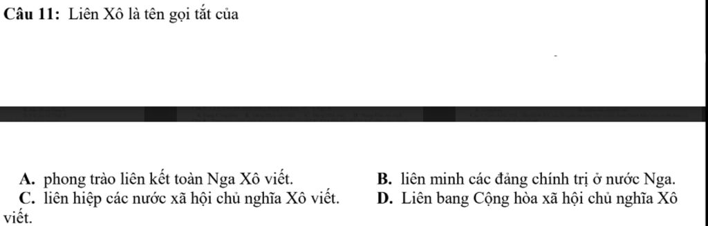 `->` Liên Xô, hay còn gọi là Liên bang Cộng hòa xã hội chủ nghĩa Xô viết, được thành lập vào năm 1922. Tên gọi này phản ánh cấu trúc chính trị của Liên Xô, bao gồm nhiều nước cộng hòa xã hội chủ nghĩa được liên kết với nhau.