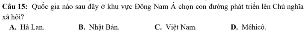 Trong `4` quốc gia trên thì Việt Nam là nước chọn con đường phát triển lên Chủ nghĩa xã hội
