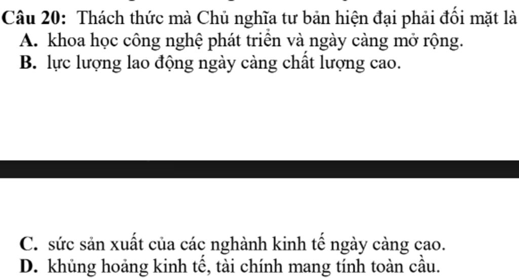 `20)` Thách thức mà Chủ nghĩa tư bản hiện đại phải đối mặt là