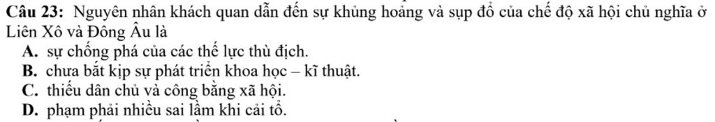 Sự lạc hậu trong phát triển kinh tế, đặc biệt là không bắt kịp với những tiến bộ trong khoa học – công nghệ so với các nước tư bản, đã dẫn đến hiệu suất kinh tế thấp, khó khăn trong việc đáp ứng nhu cầu của người dân, từ đó tạo ra khủng hoảng và sụp đổ hệ thống xã hội chủ nghĩa.