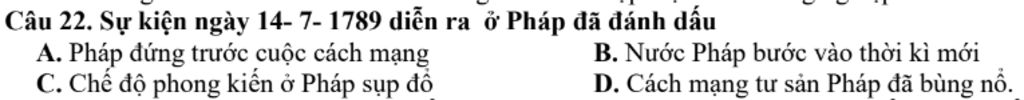 Ngày `14-7-1789` việc chiếm Bastille được coi là biểu tượng của cuộc cách mạng, đánh dấu sự khởi đầu của cuộc cách mạng tư sản Pháp, lật đổ chế độ phong kiến và mở ra một giai đoạn mới trong lịch sử nước Pháp