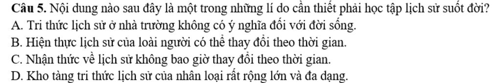 `->` Việc học tập lịch sử suốt đời giúp con người tiếp cận và hiểu biết thêm về những kiến thức phong phú, đa dạng từ quá khứ, từ đó áp dụng vào cuộc sống hiện tại.