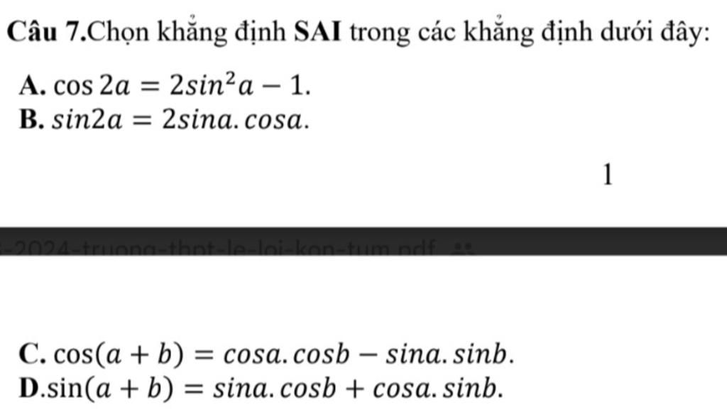 Câu 7.Chọn khẳng định SAI trong các khẳng định dưới đây: