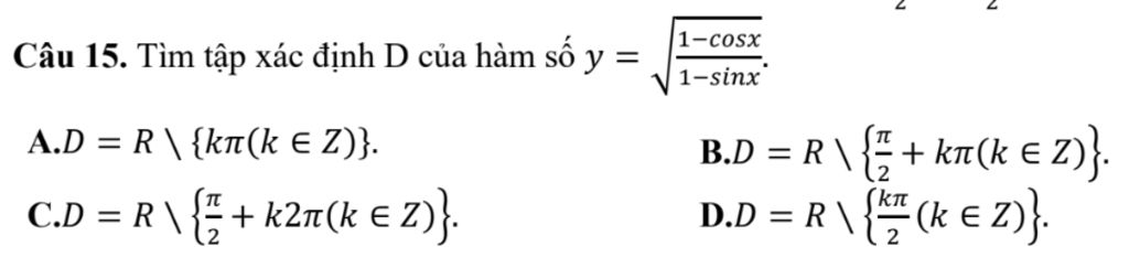 `-> TXĐ: D= RR\\{\frac{\pi}{2}+k2\pi|kinZZ}`
