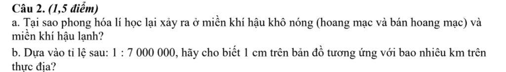 `b` ) Trên thức địa tương ứng với `1cm` trên bản đồ: `1` . `7000000` = `7000000``cm` = `70``km`